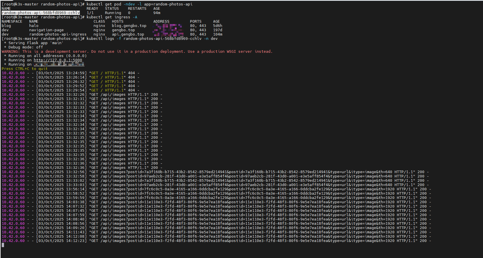 /api/images路由,每次请求会从本地挂载的图片目录随机返回一张图片。支持容器化部署,并可通过 Kubernetes Ingress 对外暴露服务。